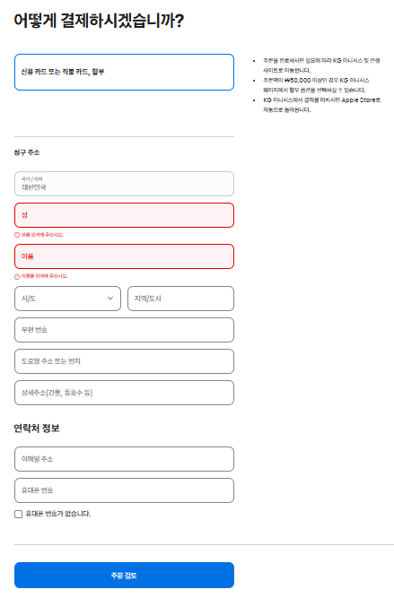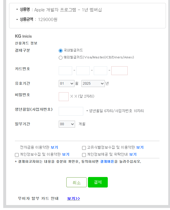 맴버십 갱신 누르고 계정 정보 입력해서 들어가면 결제 사항 입력 화면 나옴.